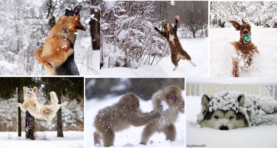Ловит котик наш снежки,