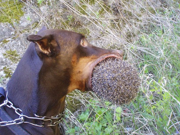Удержать ежа зубами.