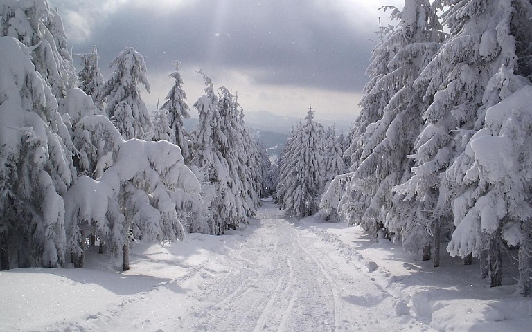 Притихший лес в снега одет