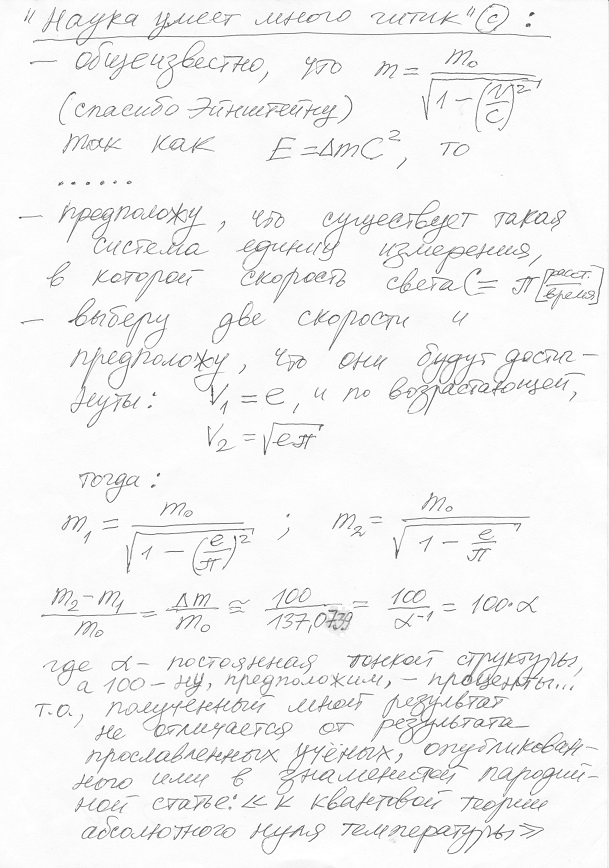 "пробный шар" будет про "постоянную тонкой структуры" (альфа), о физической природе которой много лет не смолкают споры... способов её вычисления придумано множество... например, про методику Эддингтона - Вольфганг Паули метко выразился так: "это была скорее РОМАНТИЧЕСКАЯ ПОЭЗИЯ, а не физика" (см. в Википедии")