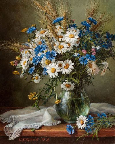Охапку полевых цветов,