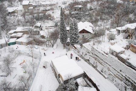 Достаются санки , лыжи