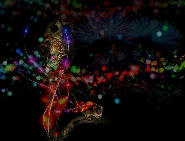 The Owl in neon skies