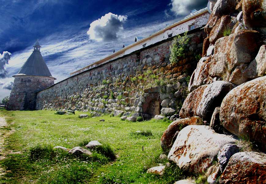 В редкие солнечные дни крепостные стены Соловецкого монастыря играли яркими праздничными цветами, словно фантастическое гигантское панно. Только узкие темные щели бойниц, да крохотные оконца монастырской тюрьмы, оказавшиеся теперь у самой земли, нарушали эту гармонию. Недавно кто-то положил туда несколько красных гвоздик…