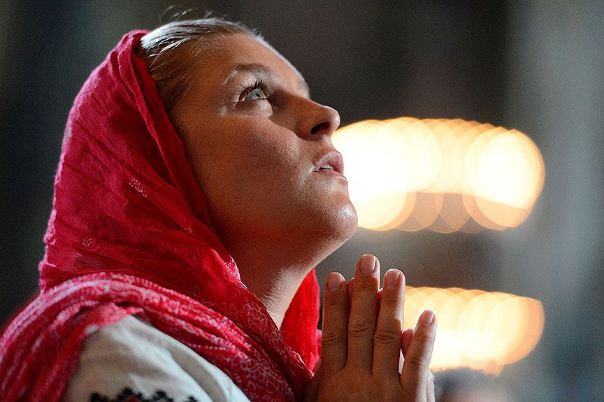 В молитве мать соединяет руки