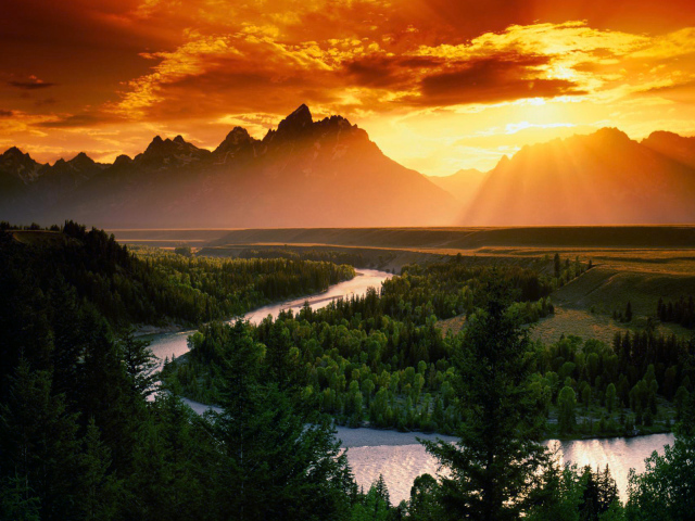 Горит закат, пылают горы.