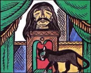 Спрыгнув с печки, Мурка рыжая