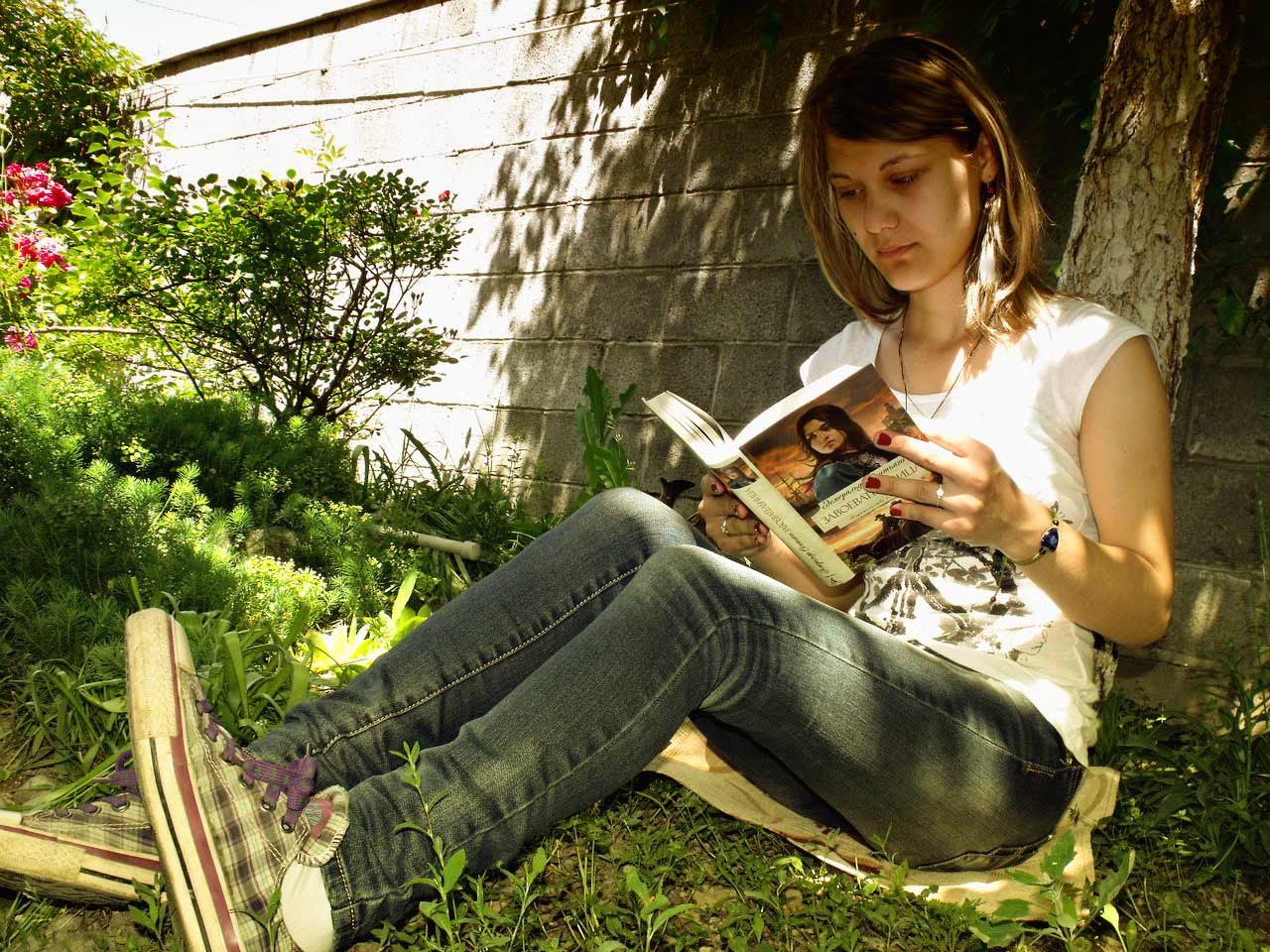 Читая их она была в полете.