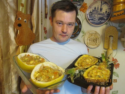запечёное в половинках фруктов и овощей.