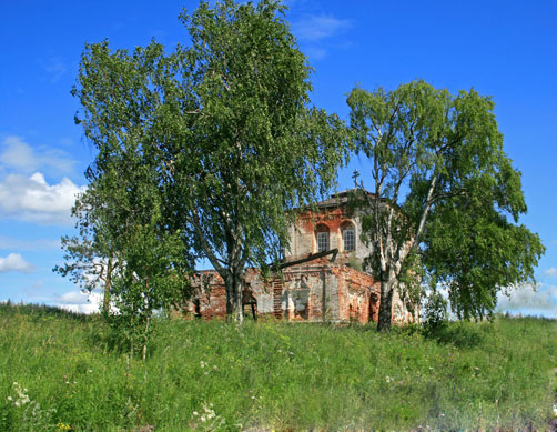 А над ним, на горе – церковь, сняты кресты,