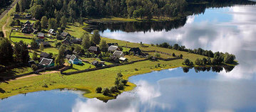 За деревьями, за избами.