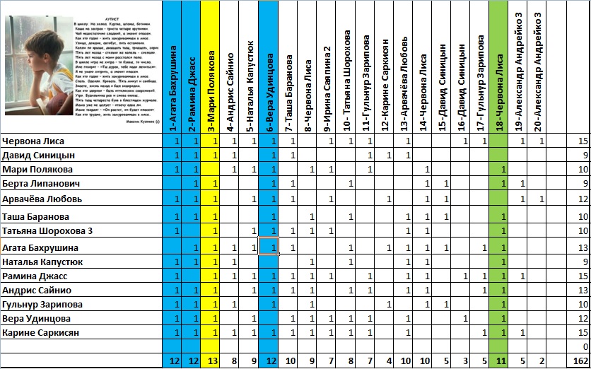 Агата Бахрушина (стих № 1), 12 голосов - 500 баллов,