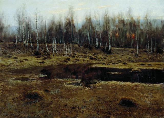 Над рекой закат горит…