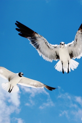 Птицы парами парят.