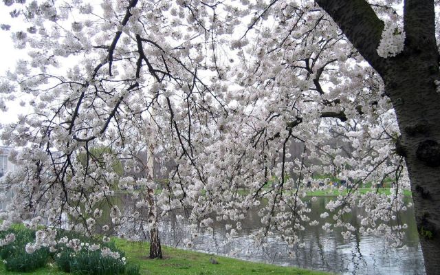 В Алма-Ате цветёт белым цветом вишня.