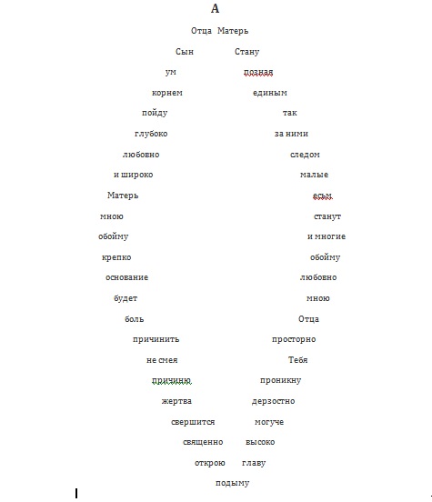 Стихотворение написано в графической форме, дополняющей его смысл. Читается слева-вниз-направо-вверх.