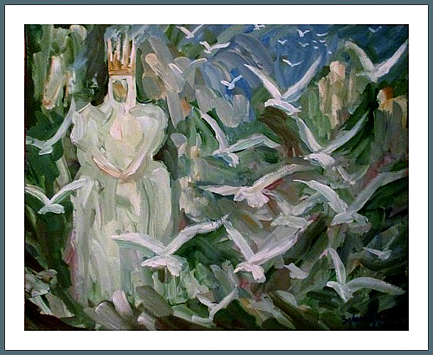 Белый цвет символизирует чистоту, даже святость... Но без любви любое, даже самое чистое сердце просто летает в белых облаках как глупая белая птица. Во мне именно такие мысли возникли при просмотре твоего великолепного произведения, Елена.