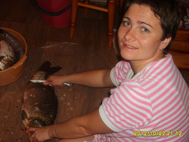 И с карпа чешую снимала.