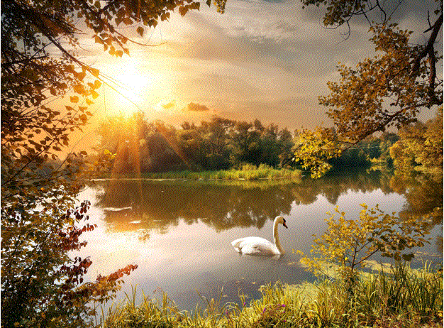 Застыл как изваянье лебедь на воде