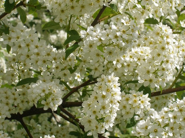 Куст черёмухи оденет
