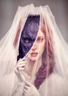 В ее целях фата и белое платье
