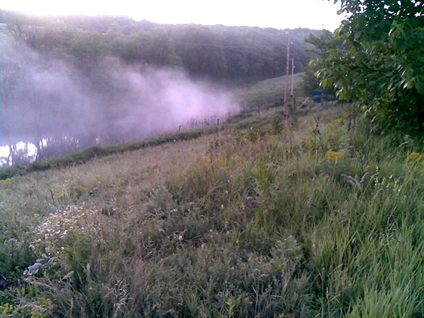 На дно пруда намыло много плодородной земли. Мы с женой возим ее на тачке и подсыпаем на своем участке - расположены наши "дачи" на буграх; красивых, но тяжелых (иногда, особенно на восходе, хочется сказать - тяжелых, но красивых).