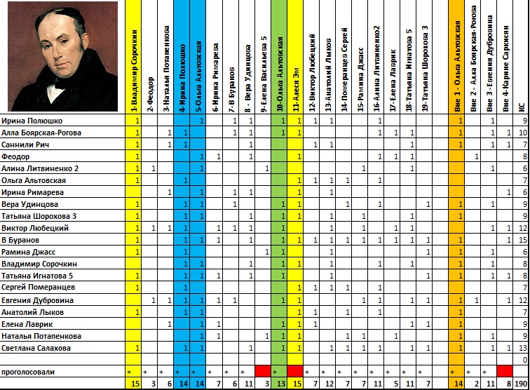 Среди внеконкурсных произведений больше всего голосов набрало стихотворение № 1 Ольги Альтовской, которой вручается 100 баллов.