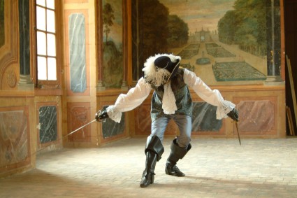 На выпаде шагов в обратный реверанс.
