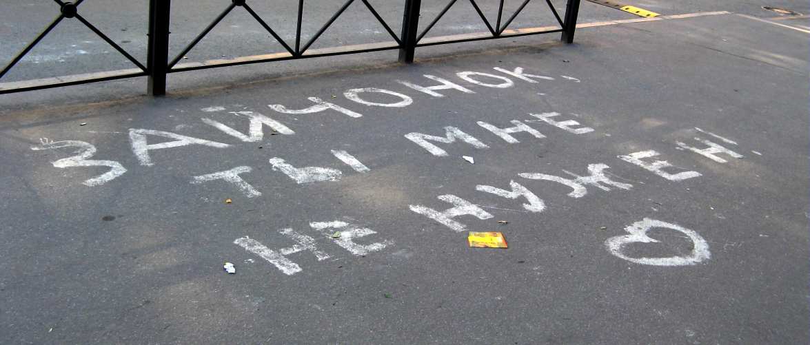 Под балконом – огромная надпись мелом: