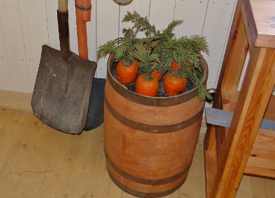 Зайка в кадушке морковку растит,
