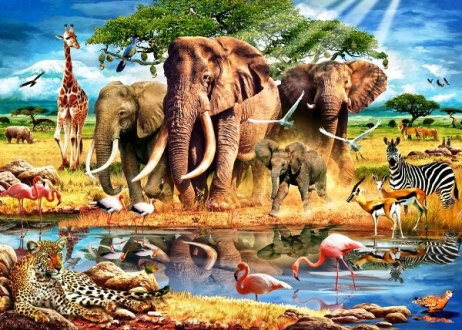 Утром звери приходят напиться.
