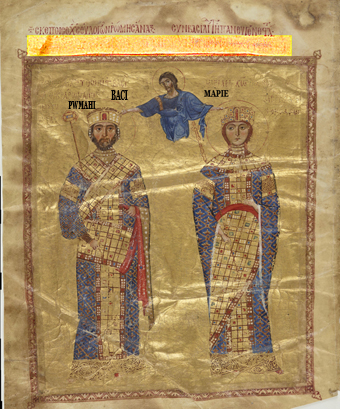 На ней, якобы изображен Никифор III Вотаниат, правивший Византией в 1071-78 годах и жена, Мария Аланская.