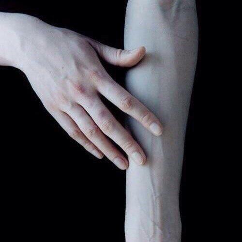 и чертить лезвием знаки на руках.
