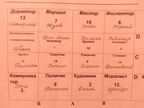 D – экватор сенсорики (верхний и нижний ряды) - интуиции (два центральных ряда).