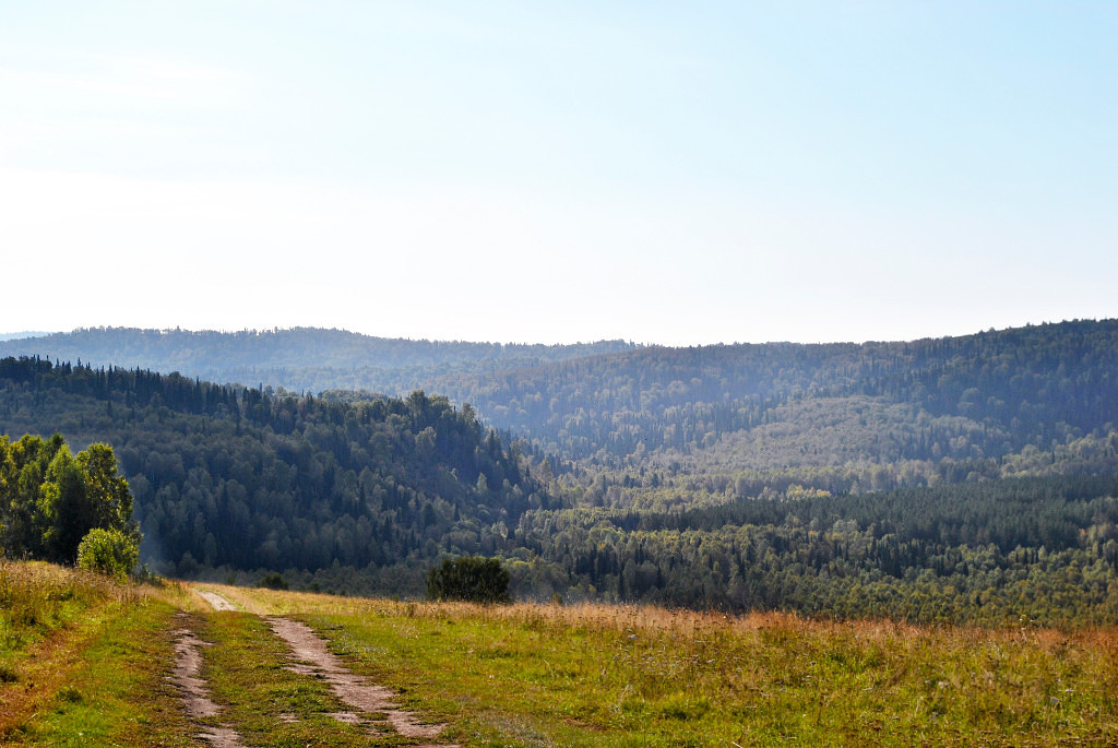 * Внизу , между холмами в лощине , а по сибирски - в логУ , протекает река Красный Калтанчик ... Над рекой стЕлется дымчато - седой туман ...