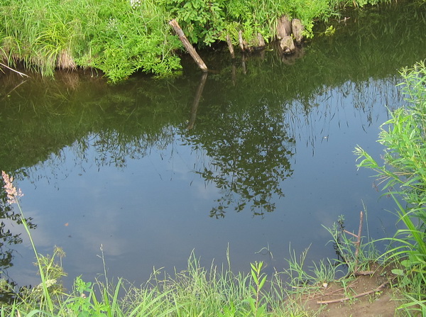 Вслед за нею от жары на речку –