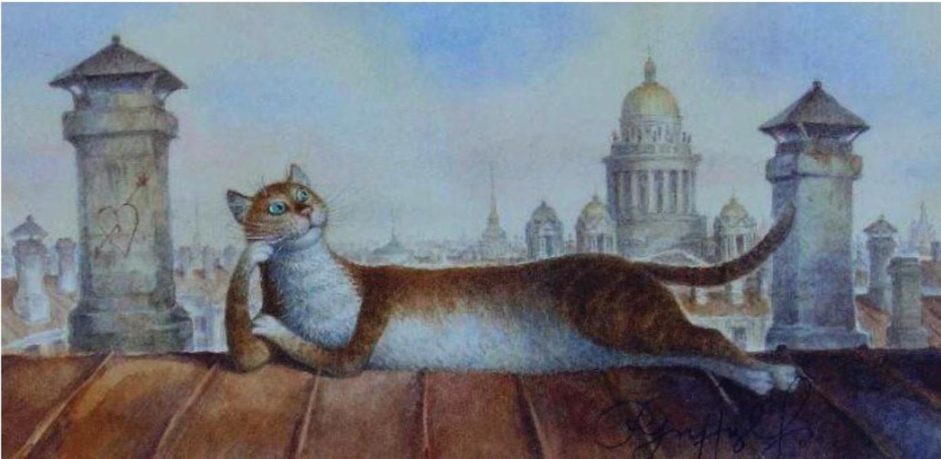 Иллюстрация Владимира Румянцева - известного питерского художника-акварелиста, прославившегося написанием картин, посвящённых питерским котам.