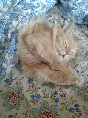 Рядом спит пушистый кот.