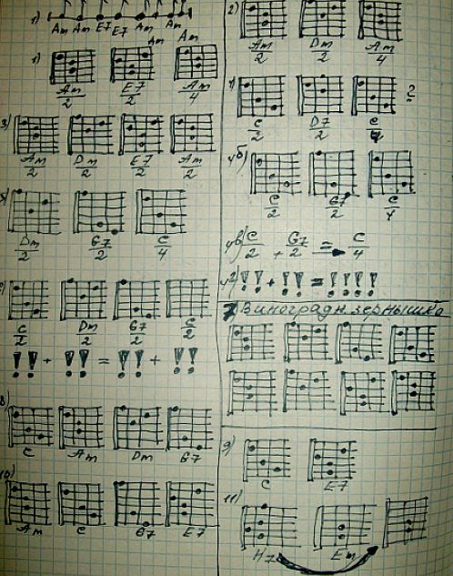 Am……………..E7……………….Am –последовательность 1 на рисунке.