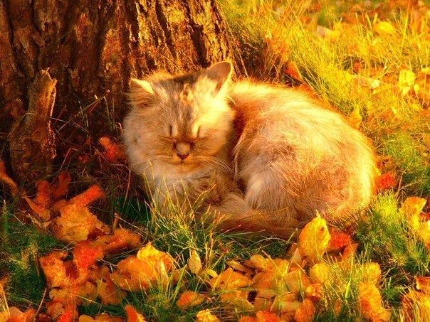 Листья, звезды и кота!