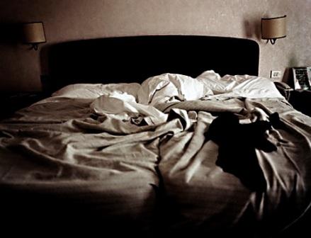 От горя раскинувшись на кровати,