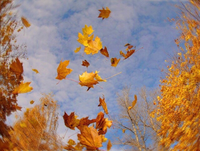 Неба серебрится просинь, кружит листья карусель!