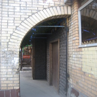Былинный дом и арку у подъезда,