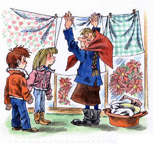 Как бабка вешает бельё