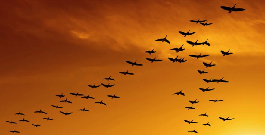 почему они летают не просто стаей, как в основном все пернатые, а красивым, чем-то