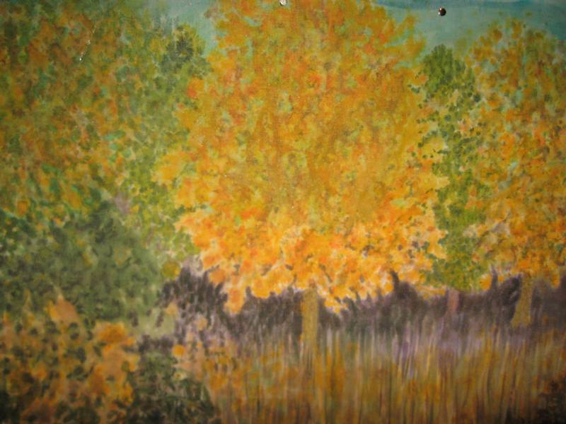 Картина. "Осень". Батик. Авторское исполнение.