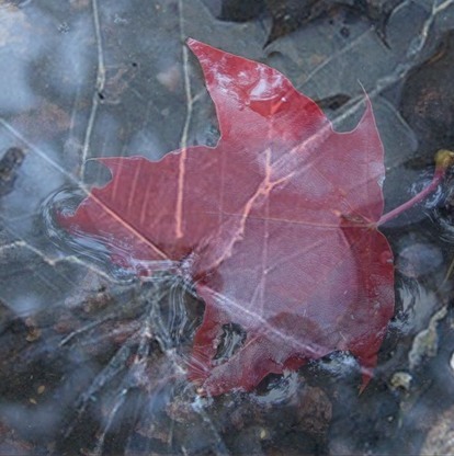 Вот лист кленовый в луже, глянь,