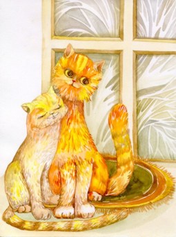 Рыжий котик с кошкой.