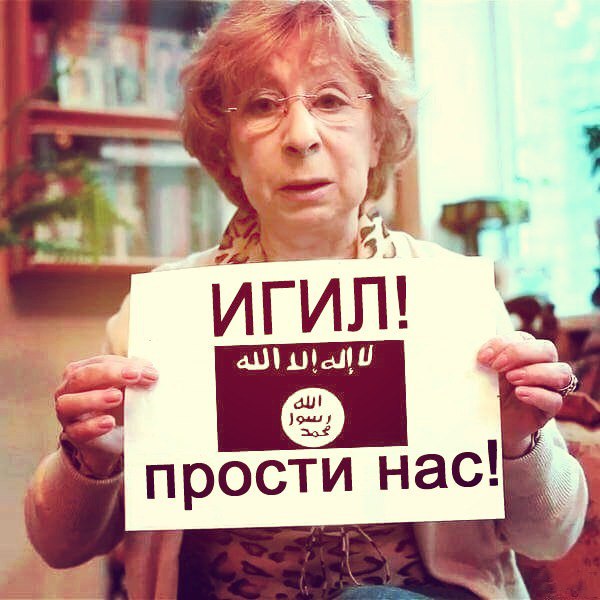 Что только ни рисовали на плакатике, который держит Лия Ахеджакова.