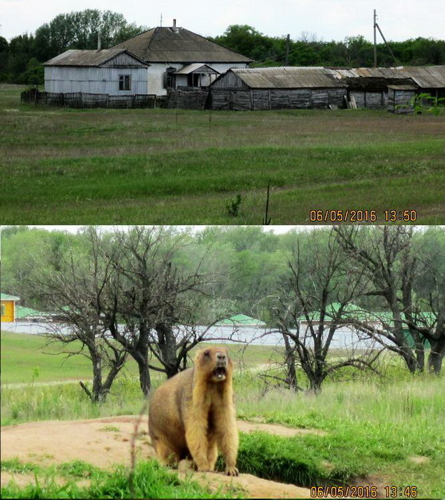 На верхнем снимке, курень дяди Вани, а на нижнем дома беженцев с союзных республик.